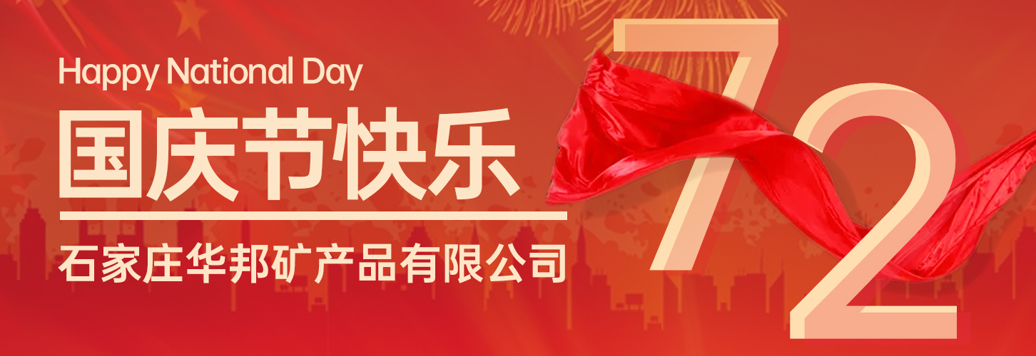 金秋十月,祖國(guó)華誕,普天同慶,頌愛(ài)中華!石家莊華邦礦產(chǎn)品有限公司,將一如既往的腳踏實(shí)地,不斷進(jìn)取,再創(chuàng)輝煌!祝愿我們的祖國(guó)更加繁榮昌盛!